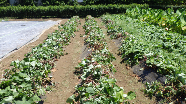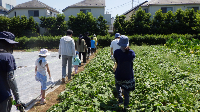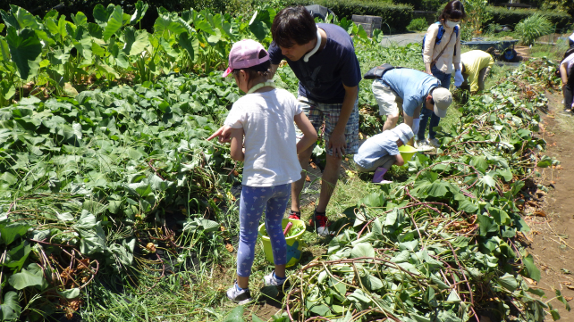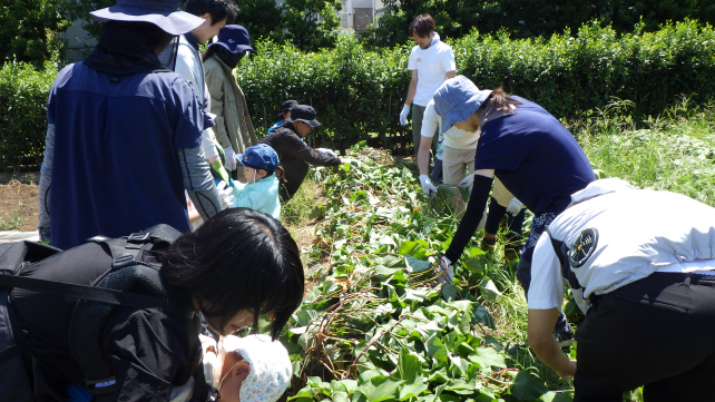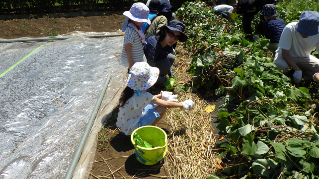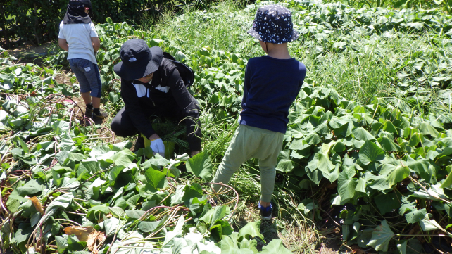 サツマイモ生育作業体験(中間管理)を7月30日午前10時組大人9人子ども9人