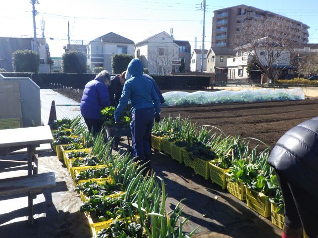 続いておなじみのコマツナです。今回で3回目の収穫。ホウレンソウとコマツナの生育の早さの違いを改めて実感しながら、こちらは慣れた手つきで収穫していきます。