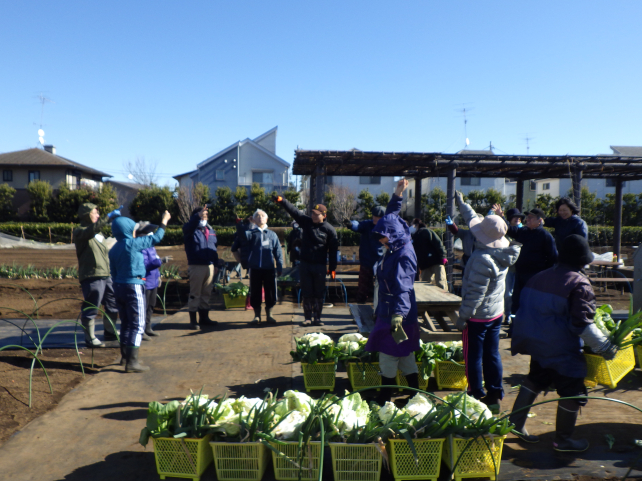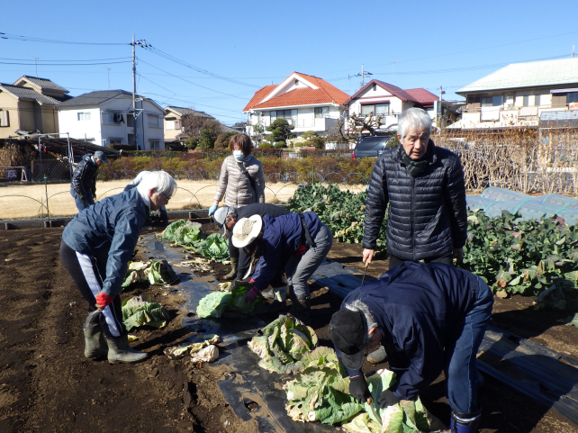 さらに前回12月に一度収穫し、まだ残しておいたキャベツと白菜の収穫。寒さに当たるとどうなるかといった様子も観察しながらの収穫です。