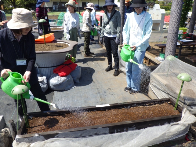 最後にたっぷりと水をあげて終了です。ジョウロの使い方も確認して、上手にあげられるようになりました。