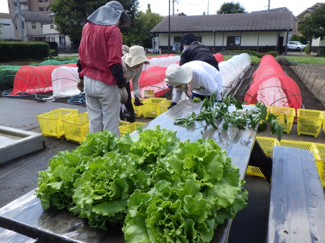 お楽しみの秋ナスやピーマン、暑い中植え付けたレタスなどを収穫して、本日の講座は終了しました。