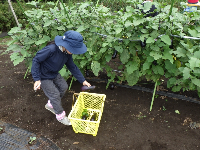 最後に前期の講座で植えたナスとピーマンがまだまだ元気なので、ナスとピーマンの収穫を体験してもらって、今日の講座は終了。これから12月まで、よろしくお願いします。次回も元気に公園にきてくださいね。