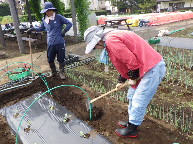 今日は杉並区の農家さん2名が公園に来てくださり、一緒に作業してくださいました。