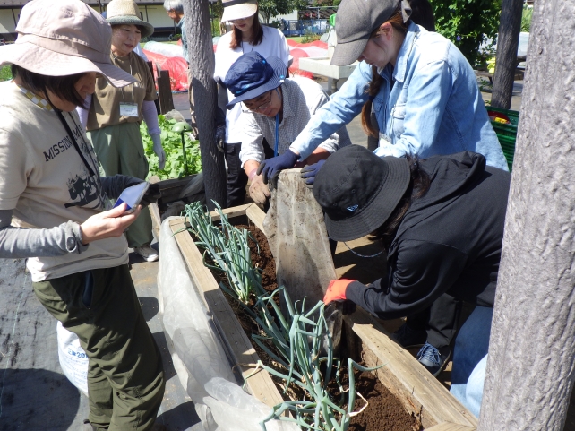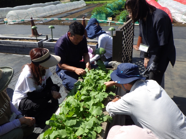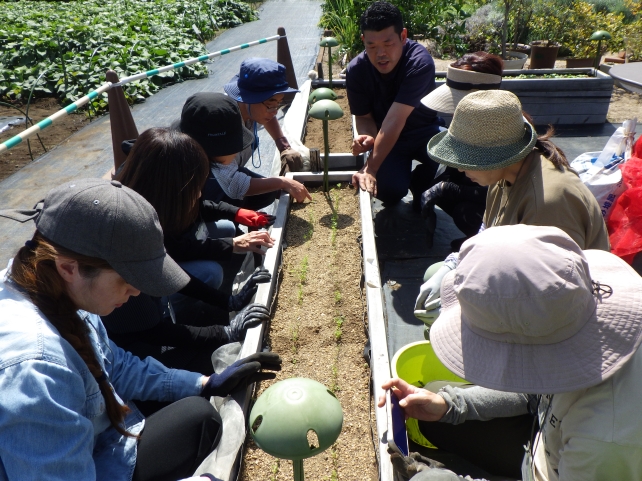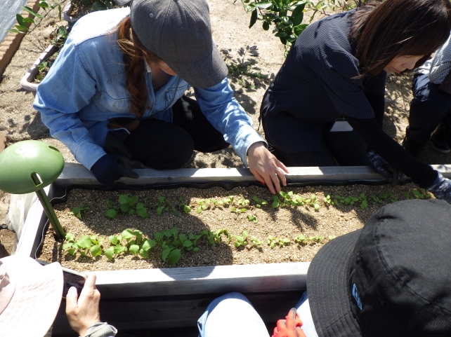 農園の方では、植え付けから2週間、3週間がたった作物の成長を確認していきます。