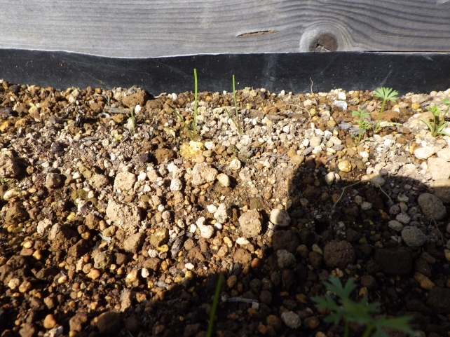 ニンジンは最も暑さと害虫の影響を受けています。せっかく育ちはじめた本葉を虫に食われてしまうのはとても残念です。全員で地上部はもちろん、土中も探してみましたが、今日は虫を見つけられませんでした。無農薬栽培の難しいところです。気温も下がってきましたので、今後の成長に期待します。
