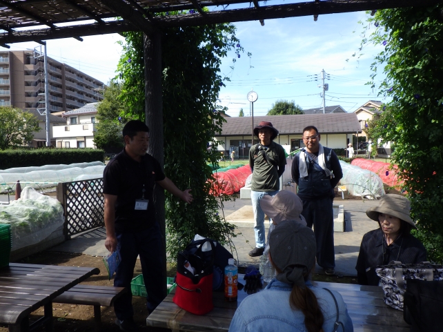やっと暑さもおさまってきました。ぐっと大きく成長した作物もありますが、暑さの影響を受けたのか成長がひかえめな作物も見られ、露地野菜の栽培の難しさを受講生皆で分かち合いました。