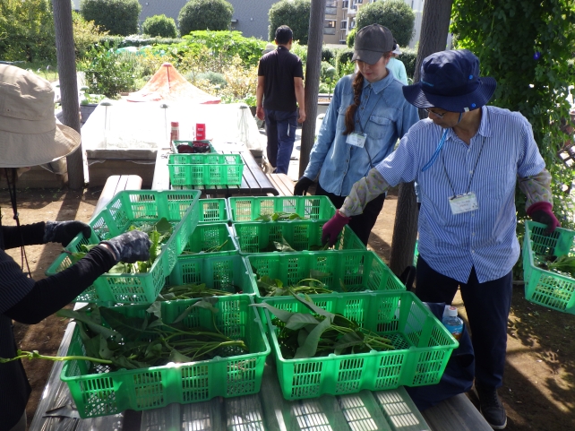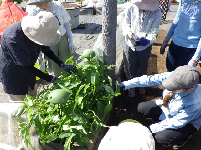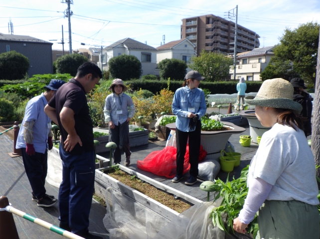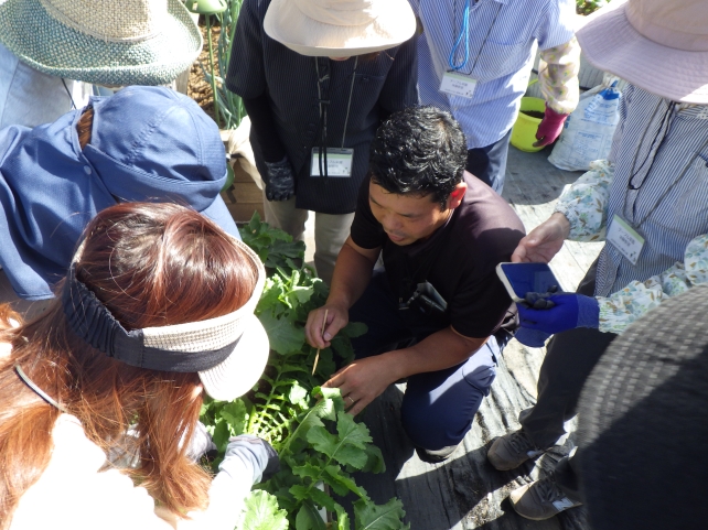 今日は杉並区の農家さんにもお越しいただき、一緒に作物の成長を見ていただいたり、害虫の判別などをしていただきました。