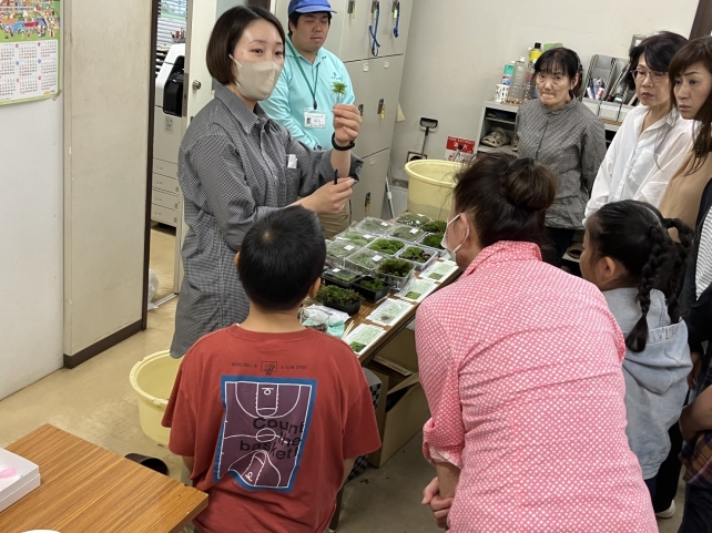 また、コケテラリウムを長い間観賞して頂きたいという思いから、ご家庭へ持ち帰って頂いた後の管理方法についても重要と考え、説明する時間を設けたのですが、講師の話を聞きながら熱心にメモを取る姿もたくさん見られました。