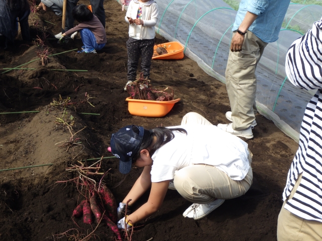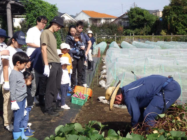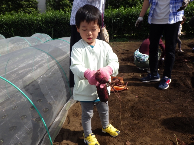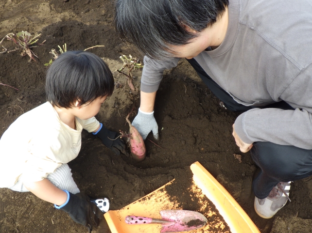 さつまいもの掘り方の実演では、土から顔を出したお芋をみて、わー!と歓声があがりました。
