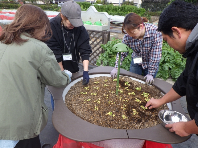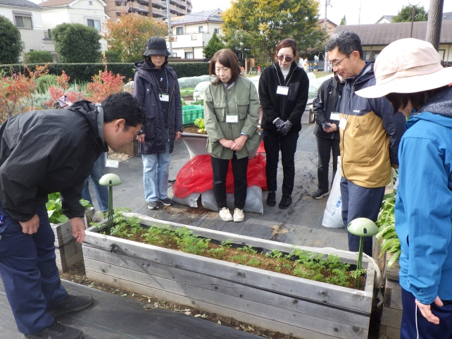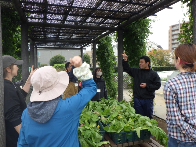 畑にも少し出て、テーブル菜園で扱っている作物と同じものを見学。今後の成長した姿をイメージしてもらいました。