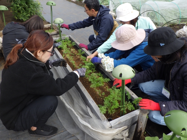 先週行う予定だった作業も今日1日にまとめての作業となりましたので、みんなで手分けして間引きや収穫を進めていきました。