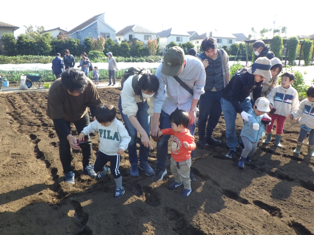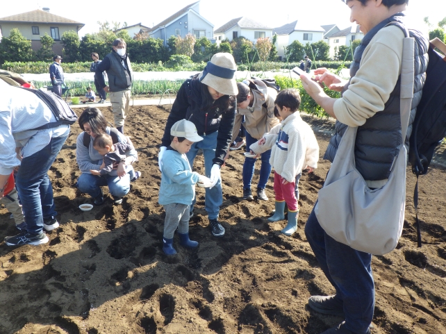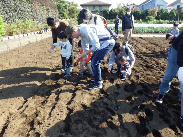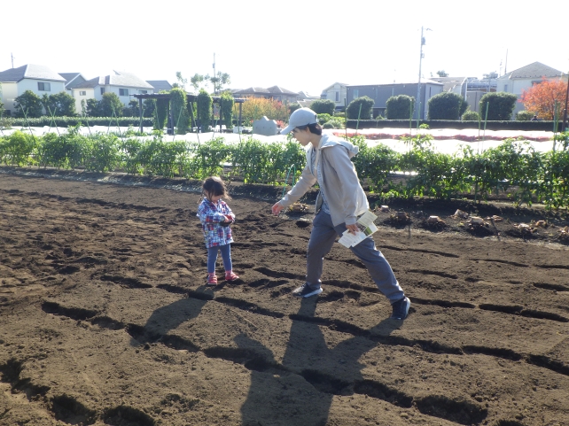 ふかふかの畑に入ってからは、まずは肥料を使って麦まきの練習をしました。