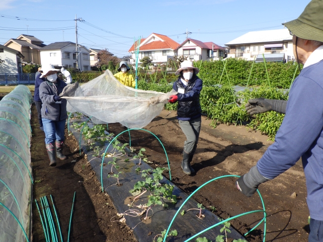 また、前回植えたのらぼうにネットと保温のためのビニールもかけました。