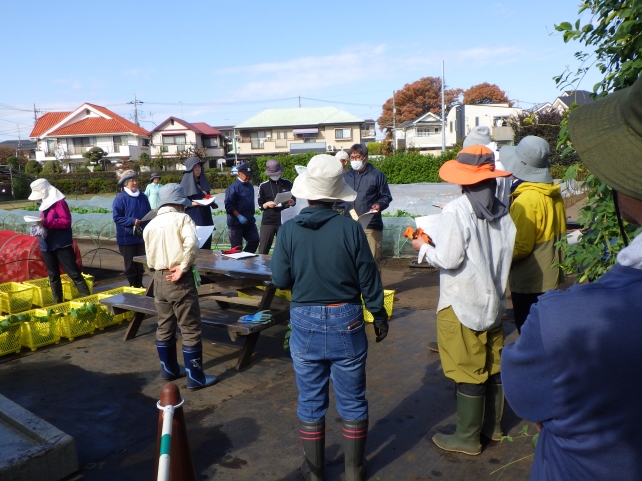 立冬を過ぎたとは思えない暖かい日差しの中、今日の作業の説明を聞いて、それぞれ分担して作業にあたりました。