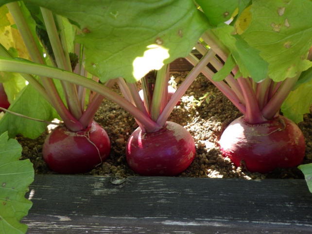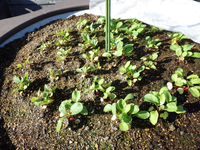 ダイコンは短ダイコンですが太さがぐっと増し、ずんぐりとしたダイコンが収穫できました。1台のプランターから15本のダイコンが収穫できました。
