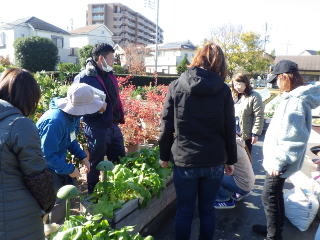 前回から3週間と間を空けての教室となりました。野菜がぐんぐん育つ秋の気候ですので、プランターの野菜も前回と比べてぐっと太く大きくなりました。。