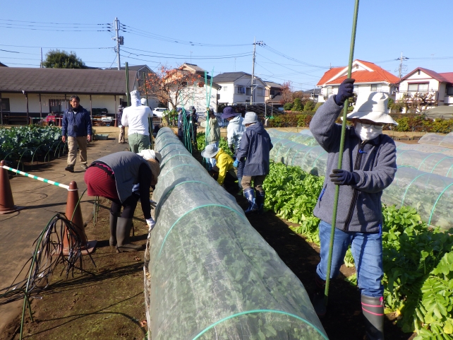 まずは作物を虫から守ってくれていたネットなどを片付けます。