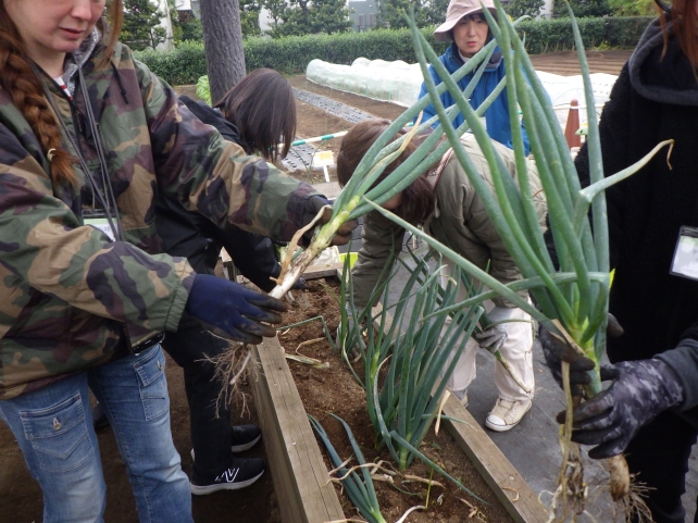 残暑まっさかりのまだまだ暑い9月から始まった講座ですが、今日は雪が降りそうな雲行きのなかで皆で育ててきた野菜の収穫と後片付けをしました。