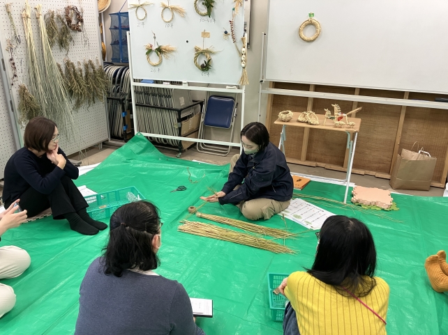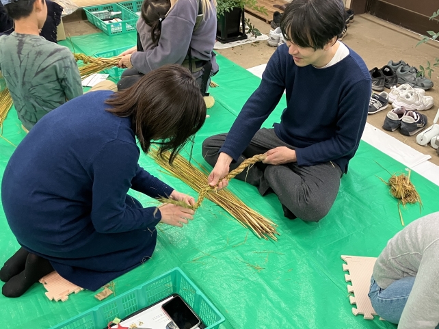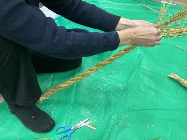参加者の方からは、「縄を綯うことを考えると、テーブルの上で行うのではなく、地べたに座ることも納得できた。やりやすい!」との声も聞かれました。
