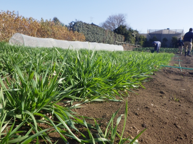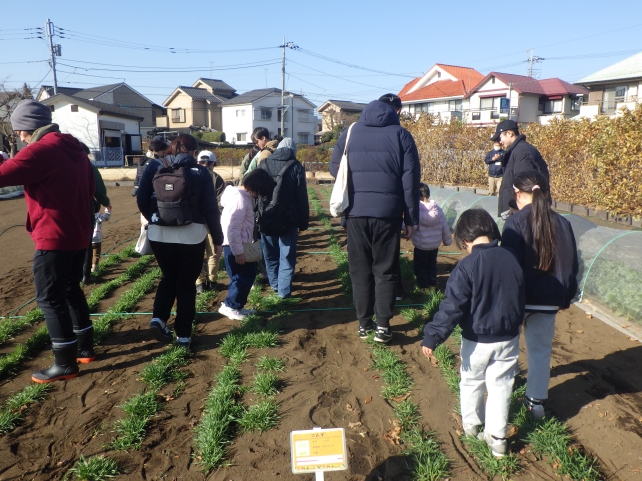 11月15日に種を播いていただいた麦ですが、今年は順調に生育し、踏んでいただくのにちょうどよい大きさに成長しました。例年は寒さが厳しい時期ですが、今年は日射しもあり暖かい日となりました。